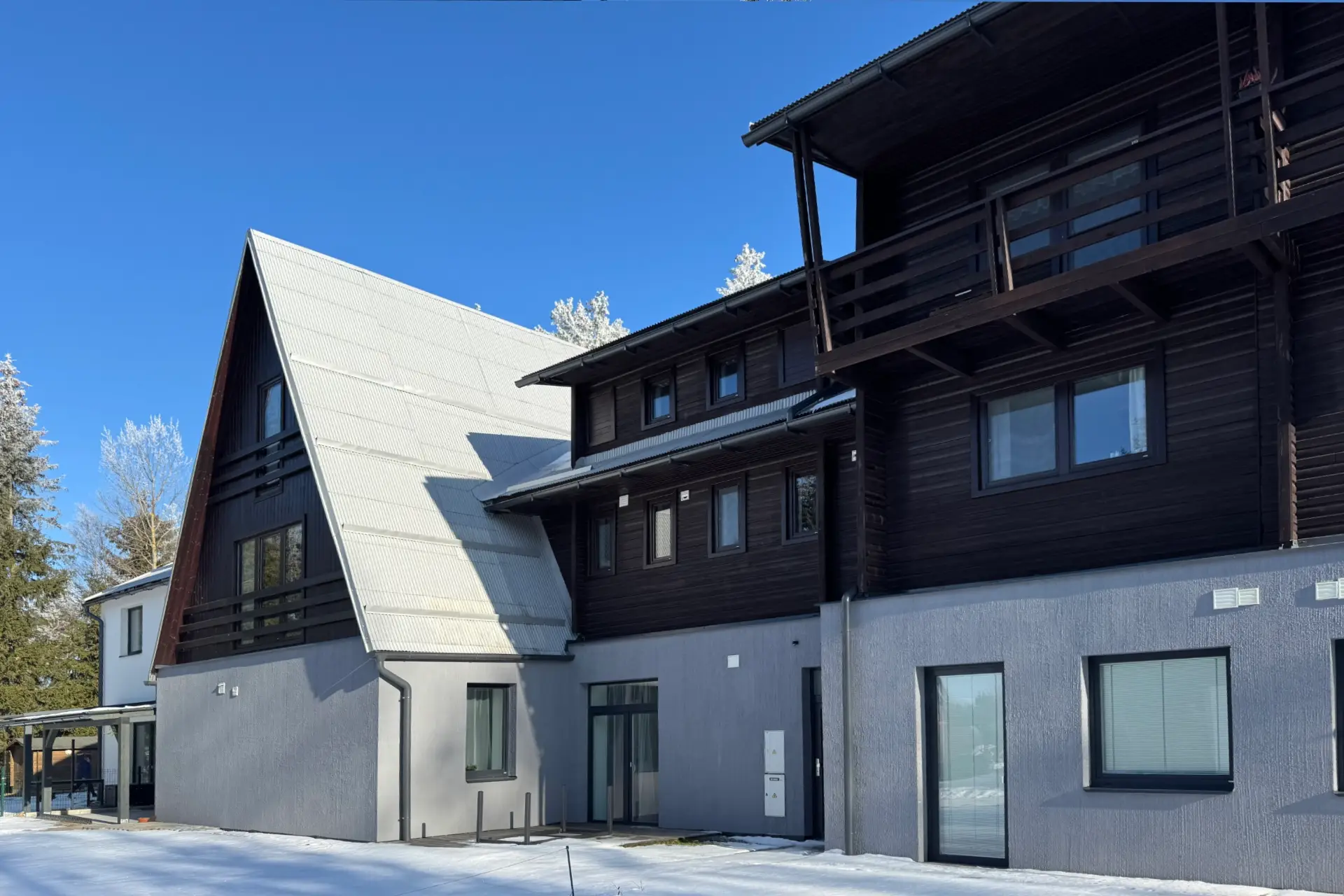 Apartmán je součástí bytového domu v malém ubytovacím komplexu. Přímo na dům navazuje les, cyklostezka a turistické trasy. Můžete tak krásně relaxovat a vychutnávat si čerstvý vzduch.