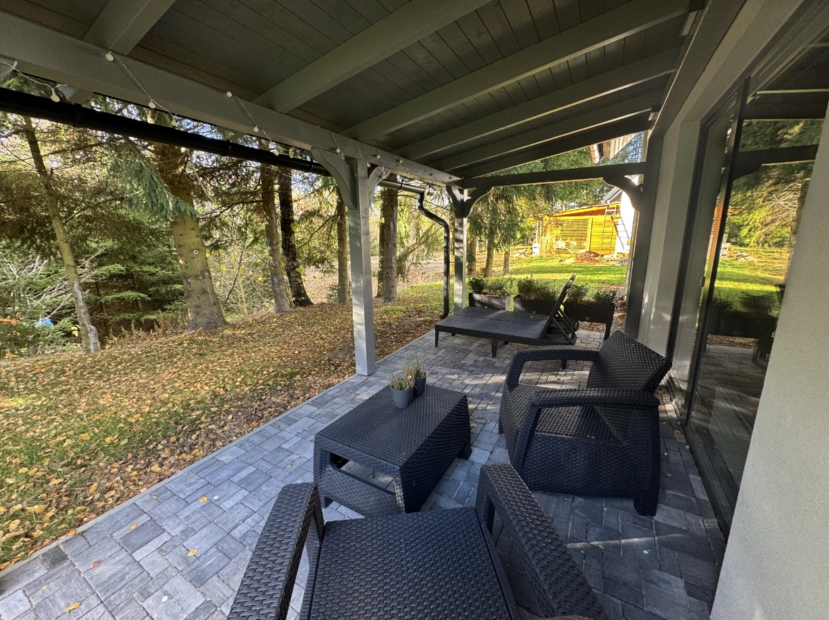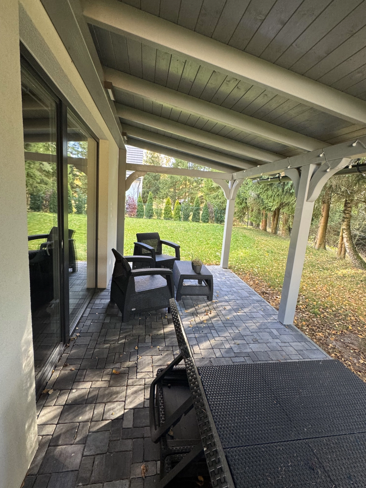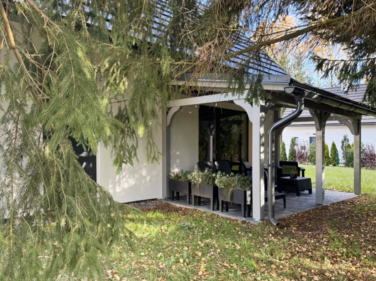 Domek stojí v malém ubytovacím komplexu a je umístěn na vlastním pozemku, kde si užijete maximální soukromí. Na zahradě je připraveno ohniště, ideální pro večerní posezení s rodinou nebo přáteli. Za domkem, s důrazem na vaše maximální soukromí, se nachází prostorná terasa s venkovním posezením, kde můžete relaxovat a vychutnávat si čerstvý vzduch.